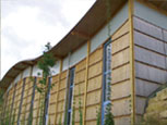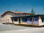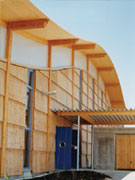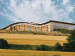 Lebensmittellagerhalle mit geschwungenem Dach 28 x 56 m Kühlraum mit Erdanschüttung Ladestation / Carport Bürogebäude / Ausstellungsfläche